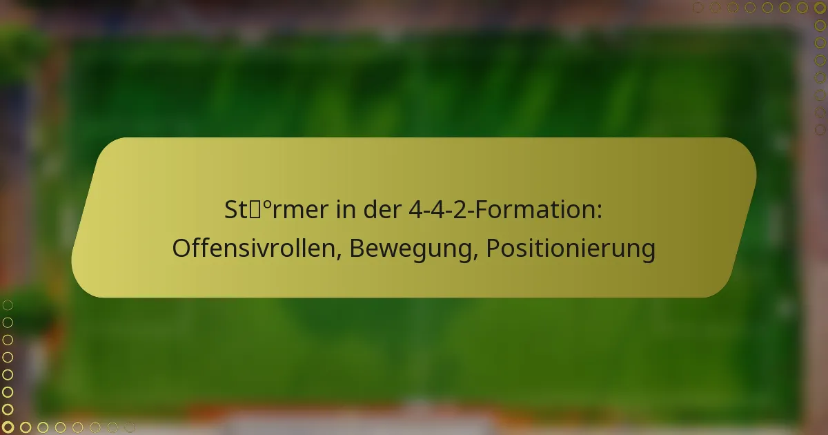 In der 4-4-2-Formation spielen Stürmer eine entscheidende Rolle in den Angriffsstrategien, die typischerweise in einen Hauptstürmer und einen Nebenstürmer unterteilt sind. Diese Rollen beinhalten spezifische Verantwortlichkeiten, die die Teamleistung verbessern und Tormöglichkeiten schaffen.